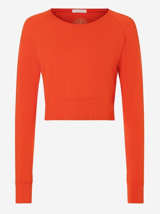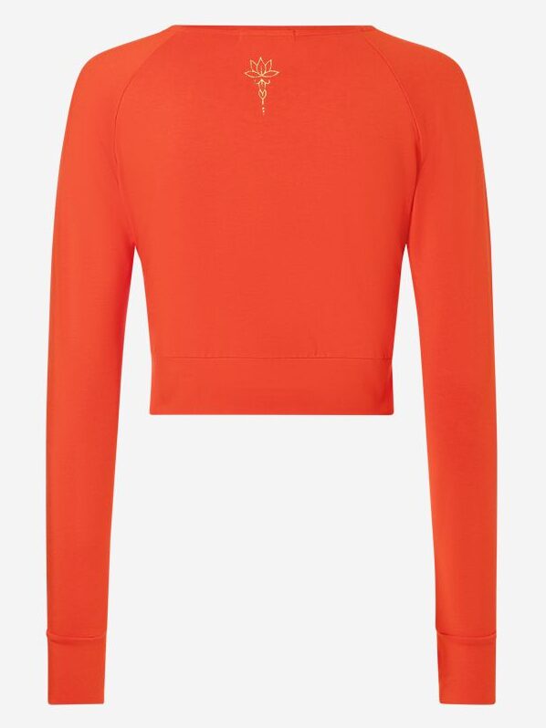 Dieses langärmelige Crop Shirt bietet dir die ideale Mischung aus Stil und Sinnhaftigkeit, um deine innere Stärke und Herzenswärme zu entfalten – ob bei sanften Bewegungen auf der Matte oder im Alltag.