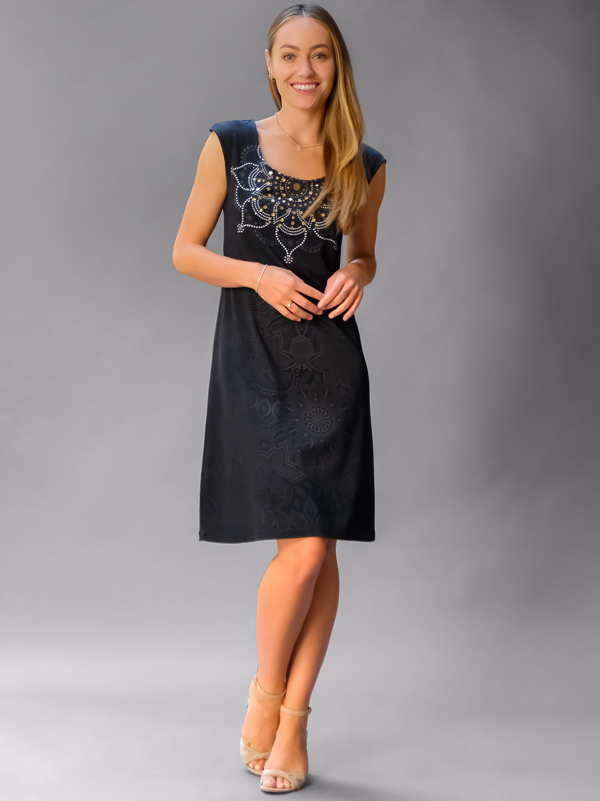 Die Farbe Schwarz steht für Seriosität, Glaubwürdigkeit, Ruhe und Wahrheit, während die goldenen Akzente den Reichtum deiner Seele ansprechen. Die elegante Farbe, die edlen Motive und die verspielte Leichtigkeit fordern deine Seele dazu auf zu tanzen und in ihre weibliche Kraft zu kommen. Das Material aus Bambus und Bio-Baumwolle ist super bequem und hautfreundlich und steht daher ganz oben auf der Wohlfühlskala.