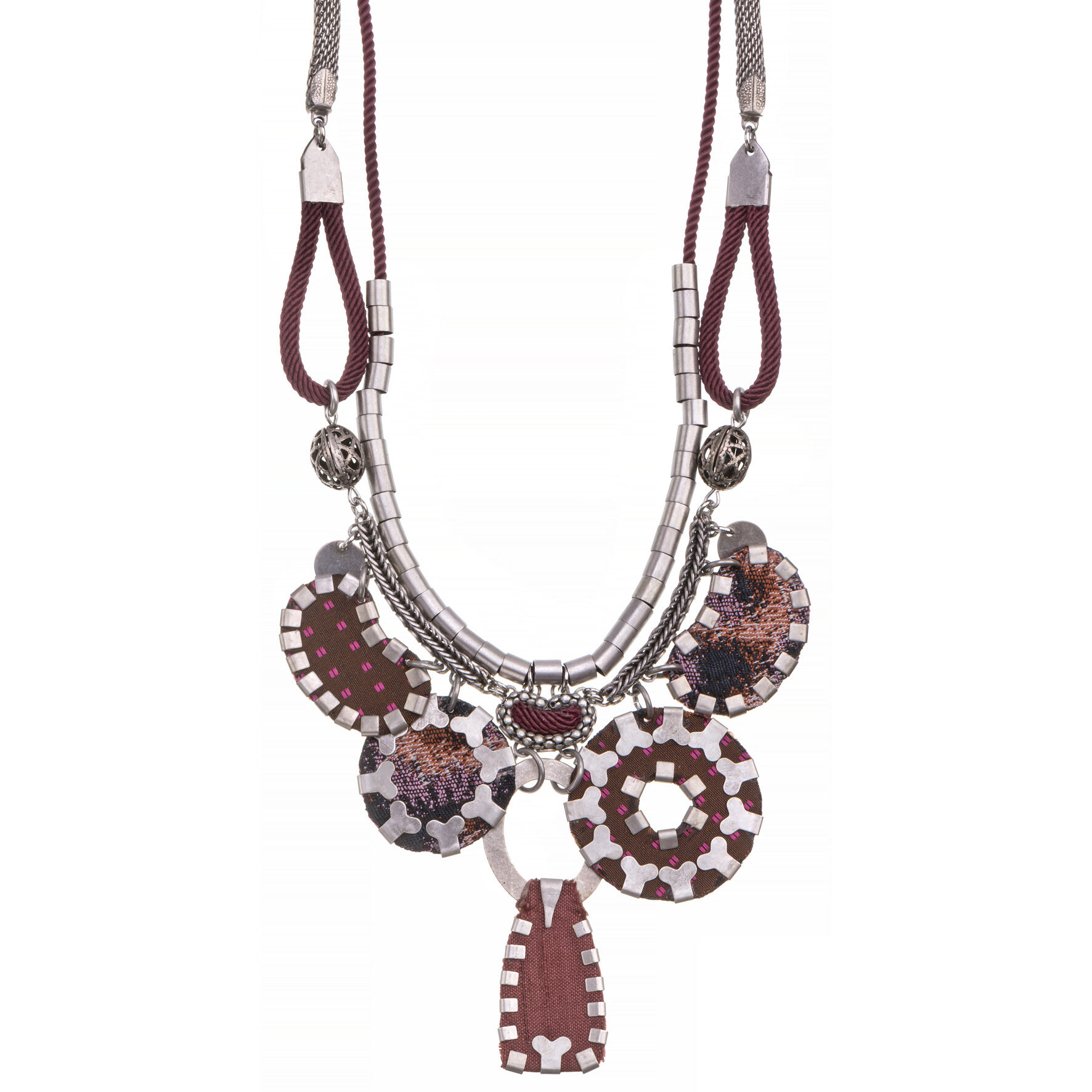 Materialmix: Versilbertes Messing, Glas, Kristall, Textil